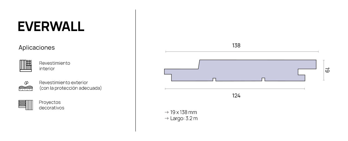 El grado Everwall es madera de Pino Radiata, que no acepta características o defectos que afecten la resistencia de la pieza.